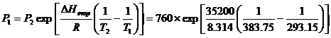 P (a 70 C) = 547.4 mm Hg; P2 (a 80 C) = 753.6 mm Hg