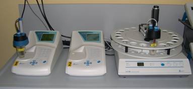 Fig. 17 Conduttimetro (1) e pHmetro (2) Radiometer ION450 con autocampionatore SAC80. |