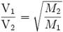 Dove V1 è la velocità di diffusione del primo gas, V2 è la velocità di diffusione del secondo gas, M1 è la massa molare del primo gas e M2 è la massa molare del secondo gas.