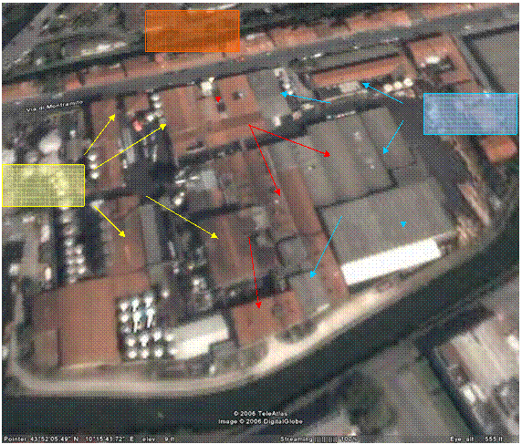 2. fase (anni '80): edifici in struttura leggera a saturazione delle aree ancora disponibili ed estensione dietro la parte esistente, lato canale. Annessione al sito del casale contadino su via Montramito.