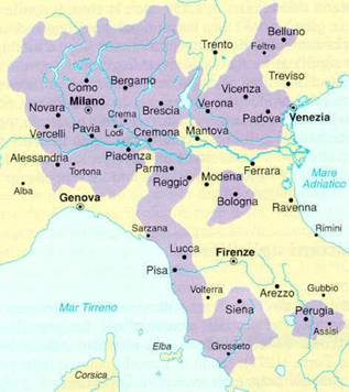 Agli inizi dei '400 comincia a delinearsi nella penisola la geografia degli Stati regionali