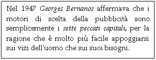 Un fenomeno in quel periodo storico necessario, che però portò ad un' enfatizzazione tale da spingere l'individuo a sentir necessari quei beni che sono soltanto una soddisfazione di bisogni falsi.