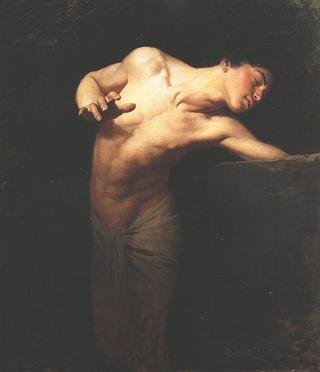 La storia del giovane ragazzo bellissimo che muore perché innamorato della sua bellezza, il giovane che considera il "suo dio il suo io", che non guarda gli altri nelle loro preoccupazioni e nei loro problemi, che possiede la terribile illusione di poter esser felice da solo.