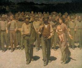 . l'operaio durante una sezione del processo produttivo produce solo il valore della propria forza-lavoro, cioè il valore dei mezzi di sussistenza che gli sono necessari ... Il secondo periodo del processo lavorativo, nel quale l'operaio sgobba oltre i limiti del lavoro necessario, gli costa certo lavoro, dispendio di forza-lavoro, ma per lui non crea nessun valore. Esso crea plusvalore, che sorride al capitalista..(dal Capitale)