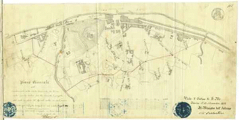 Edoardo PECCO (Ingegnere Capo del civico Ufficio D'Arte), Piano Generale dell'andamento della Cinta Daziaria di Torino sulla sponda destra del Po secondo il progetto del Sott.° in data 26 Aprile colla modificazione approvata dal Consiglio Delegato in sua seduta 3 agosto 1853, Torino, 13 novembre 1853 (Archivio Storico della Città di Torino, Decreti Reali, 1849-1863, serie 1K, n. 11, f. 112)