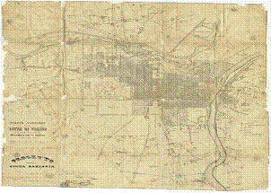 Pianta regolare della Città di Torino suoi Borghi ed adiacenze compilata per cura del Municipio sulla scala della mappa territoriale, Progetto della Cinta Daziaria, Torino, 1° agosto 1853 (Archivio Storico della Città di Torino, Decreti Reali, 1849-1863, serie 1K, n. 11, f. 106)