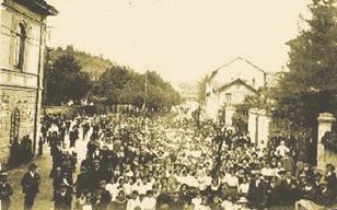 Gruppo di operai tessili in sciopero. |