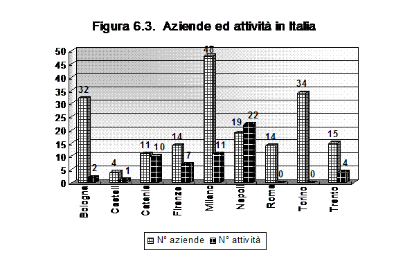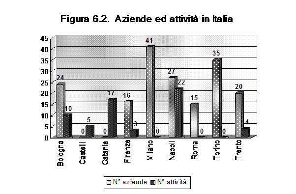 Ritengo interessante, ora, vedere come il progetto si è evoluto nei singoli continenti e in Italia. Le figure che seguono non contengono i dati relativi al 1996, in quanto per tale anno è stato possibile ottenere dati significativi solo per le aziende, e non per le attività. Pertanto non si possono confrontare con quelli degli anni precedenti.