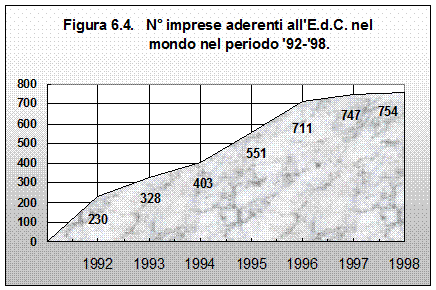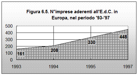 E' possibile notare la sorprendente risposta al lancio del progetto: dopo un anno operavano già 230 imprese, Negli anni seguenti la crescita è sempre stata positiva, anche se nel 1997 più contenuta. Uno dei motivi che sicuramente ha influito è il periodo di persistente crisi economica che alcuni Paesi stanno attraversando e questo si riflette anche sulle imprese di E.d.C.