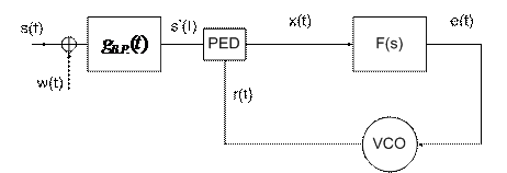 Il compito del PED (phase error detector) è quello di generare un segnale proporzionale alla differenza di fase tra r(t) e s(t). Per questo scopo un PED largamente usato è quello moltiplicativo, per il quale vale la relazione :