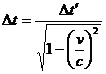 Prendiamo ora in considerazione due sistemi di riferimento S ed S'. Un osservatore in S' osserva due avvenimenti che avvengono nello stesso luogo nel sistema di riferimento S'. la posizione di questi due eventi può essere chiamata x'. L'osservatore misura un intervallo di tempo t' tra questi eventi. Un osservatore in S, per il quale i due eventi appaiono in moto osserva gli stessi eventi e misura un intervallo di tempo diverso t, dato dall'equazione: