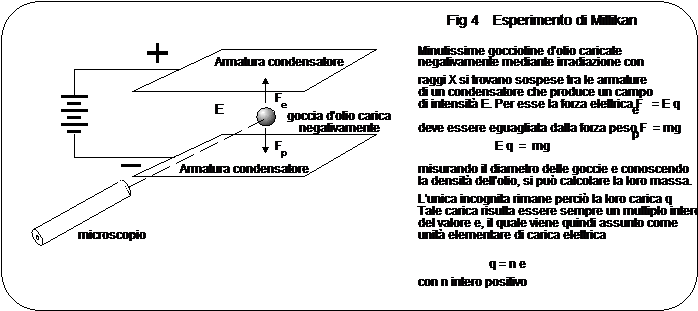 Nel 1905 Millikan dimostrò che la carica elettrica è sempre un multiplo intero di una quantità elementare pari 1,602 10-19 Coulomb, carica che si dimostrò appartenere sia al protone che all'elettrone. Nota la carica dell'elettrone ed il rapporto e/m fu quindi possibile ricavare il valore assoluto della massa dell'elettrone.