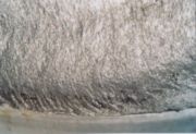 Un ingrandimento al microscopio metallografico permette di visualizzare ancora più in dettaglio le linee di cresta alla periferia, mentre le linee di arresto si possono notare come variazione di luminosità della superficie (dovuta al cambio di piano)