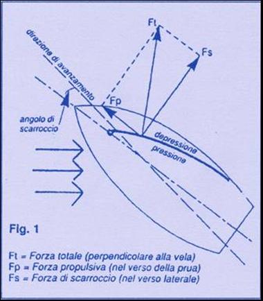 Sappiamo che un'ala di aereo è soggetta ad una forza, detta portanza, dovuta alla velocità del mobile in aria ferma. Detta forza agisce in un piano ortogonale al piano dell'orizzonte. Nel caso di una barca a vela, invece, si viene a costituire una forza analoga, che abbiamo chiamato forza totale, dovuta alla velocità del vento supposta la vela ferma rispetto ad esso. La forza totale è parallela al piano dell'orizzonte.
