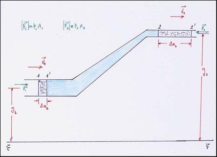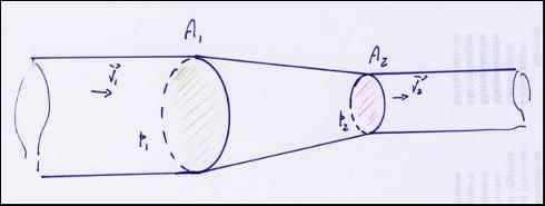 Per il principio di conservazione dell'energia, possiamo affermare che l'energia totale deve uguagliare il lavoro totale e questa uguaglianza deve conservarsi identica sia nella sezione 1 che nella sezione 2, perciò deve essere: