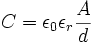 La capacità di un condensatore piano (armature piane e parallele) è proporzionale al rapporto tra la superficie A di una delle armature e la loro distanza d. La costante di proporzionalità ε è una caratteristica dell'isolante interposto e si chiama costante dielettrica assoluta e si misura in farad/m. Ora, poiché la costante dielettrica del vuoto vale ε0=8,85*10-12 F/m, il rapporto tra la costante dielettrica assoluta di un isolante e quella del vuoto è un numero puro chiamato costante dielettrica relativa. La capacità di un condensatore piano a facce parallele è quindi: