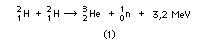 Ad esempio, dalla reazione di fusione di due nuclei di deuterio, o idrogeno pesante (H),