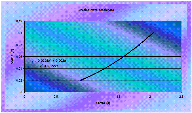 Dal grafico e dai dati sperimentali è emerso che si tratta di un moto accelerato. Il grafico è formato da una componete verticale (moto accelerato) e da una orizzontale (moto rettilineo). Essendo dati sperimentali hanno delle imprecisioni.