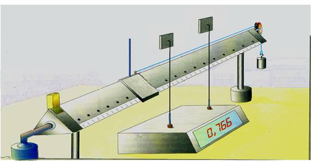 Materiale: rotaia a cuscinetto ad aria, cuscinetto, cronometro e peso.