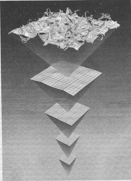 Però, se torniamo ad occuparci di scale più consuete, le oscillazioni si cancellano l'una con l'altra, e la geometria regolare dell'universo ritorna.