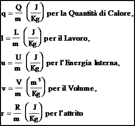 Quando il sistema è Chiuso oppure Aperto a Massa Costante, si può prescindere dalla massa del sistema e riferirsi ai valori specifici, cioè riferiti alla massa: