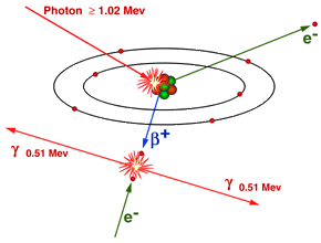 con la conseguente produzione di 2 radiazioni gamma di 0.511Mev
