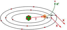 altri elettroni con emissione di radiazioni X caratteristiche o con