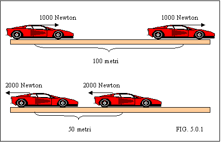 SVOLGIMENTO: prendendo come positivo il verso da sinistra a destra, notiamo come lo spostamento S valga +50 metri, mentre la forza F valga -2000 Newton; il lavoro vale dunque: