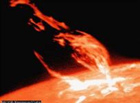 Altri aspetti caratteristici dell'attività solare sono le protuberanze e i brillamenti. Le protuberanze (prima foto a lato) sono grandi nubi d'idrogeno che s'innalzano dalla cromosfera e penetrano ampiamente nella corona sotto forma d'immense fiammate. I brillamenti (seconda foto a destra), o flares, sono violentissime esplosioni d'energia simili a lampi di luce intensissimi associati a potenti scariche elettriche.