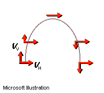 Se si trascurano gli attriti, una palla lanciata in aria con una certa angolazione rispetto all'orizzontale segue una traiettoria di tipo parabolico. Il vettore velocità, tangente in ogni punto alla traiettoria, si può scomporre nella somma di due componenti indipendenti l'una dall'altra: quella verticale (V) e quella orizzontale (O). La prima varia per effetto dell'accelerazione di gravità; la seconda, responsabile dello spostamento orizzontale, rimane costante nel tempo.