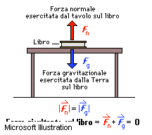 La prima legge di Newton afferma che un oggetto non soggetto a forze rimane fermo o al più si muove con velocità costante. Un libro posato su un tavolo è sottoposto a due forze: una diretta verso il basso, dovuta alla gravità, e l'altra diretta verso l'alto, dovuta alla presenza del tavolo. Poiché le due forze hanno uguale intensità ma verso opposto, la risultante è nulla e il libro rimane fermo.