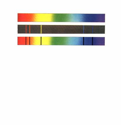 L'arcobaleno artificiale ottenuto da Newton, e da lui chiamato spettro, presentava un passaggio graduale dal violetto al rosso senza alcuna soluzione di continuità: lo strumento utilizzato non consentiva una maggiore dispersione delle varie componenti della luce bianca e perciò la luce solare forniva uno spettro che appariva come continuo. Righe scure nello spettro solare furono esaminate attentamente dal fisico tedesco von Fraunhofer e in suo onore queste righe furono chiamate righe di Fraunhofer. Anche le altre stelle, oltre il Sole, presentano spettri con un fondo continuo solcato da righe scure. Se consideriamo un gas, o un liquido o un solido, ad alta pressione portato all'incandescenza, emette uno spettro continuo, restituisce, cioè, l'energia fornitagli sotto forma di luce che comprende tutte le radiazioni visibili. Se un elemento è allo stato gassoso a bassa pressione ed è portato all'incandescenza, produce uno spettro di emissione a righe. Se una luce caratterizzata da uno spettro continuo attraversa un elemento allo stato gassoso, a bassa pressione e più freddo, essa viene privata delle righe spettrali che quello stesso elemento sarebbe in grado di produrre in condizioni di emissione: è in questo modo che ha origine uno spettro di assorbimento a righe, in quanto i vapori dell'elemento assorbono qualcosa delle radiazioni e ciò che viene assorbito viene rappresentato con le righe nere di Fraunhofer. Ogni elemento emette quello che è in grado di assorbire quindi, emette ed assorbe con la stessa frequenza (LEGGE DI PLANK, E=KF). Nell'interno delle stelle vi sono le condizioni adatte di temperatura e di pressione per la produzione di uno spettro continuo. Nelle zone più esterne delle stelle, invece, gli atomi si trovano in condizioni di temperatura e di pressione così basse da assorbire quantità di energia in modo altamente specifico, in funzione della loro natura chimica. Lo spettro continuo di emissione diventa, così, di assorbimento.