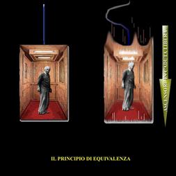 L'ascensore va in caduta libera, Einstein si 'sente' sollevato dal pavimento dell' ascensore e si ritrova come se galle-ggiasse nell'aria. Ad un certo istante, Einstein e l'ascensore subiscono la stessa accelerazione, mantenendo la stessa velocità. E' come se fossero fermi l'uno rispetto all'altro. Gli effetti della gravità si sono sostituiti con quelli dell'accelerazione, essi sono della stessa natura perciò sono equivalenti.