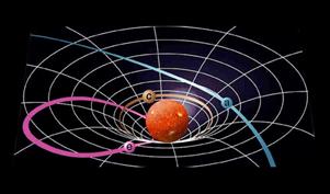 I pianeti percorrono le loro orbite perché rotolano nell'avvallamento dello spazio-tempo creato dalla massa del Sole; la Relatività Generale spiega tra l'altro l'anomalia della precessione di Mercurio, prima inspiegabile