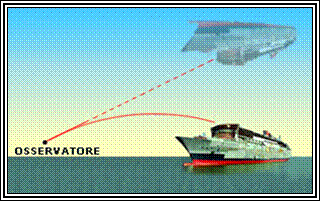 Se l'osservatore intercetta il raggio, vede la nave in alto, talvolta ingrandita o distorta, capovolta, come se volasse.