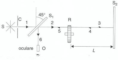 L dalla ruota R, il raggio di luce ritornerà su se stesso e, dopo una nuova