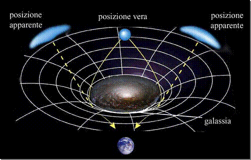 Le lenti gravitazionali si comportano allo stesso modo dei raggi deflessi, perché propriamente deflettono raggi. Quando un corpo di grande massa viene a trovarsi fra una sorgente di luce e l'osservatore, i raggi di luce provenienti dalla sorgente vengono deviati in modo tale da provocare un'amplificazione del segnale luminoso simile a quella causata da una lente. Un secondo possibile effetto delle lenti gravitazionali è quello di deformare l'oggetto originale, giungendo a generare immagini multiple. Quest'ultima proprietà delle lenti gravitazionali, unita al fatto che la gravità deforma la geometria globale dell'Universo, ha spinto alcuni ad ipotizzare che l'universo sia curvo e formi una sorta di immensa lente gravitazionale in cui la luce delle stesse stelle ci arriverebbe da più direzioni. L'ipotesi però non è supportata dalle osservazioni, in quanto la densità dell'universo osservato è di gran lunga più bassa di quanto necessario per produrre un effetto del genere.