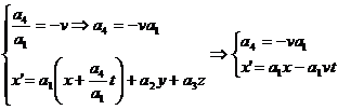 Determiniamo i coefficienti di t'. Per l'isotropia dello Spazio-Tempo supponiamo che t' non dipenda né da y né da z, altrimenti t' sarebbe in funzione di due direzioni traverse quando noi sappiamo essere la direzione parallela al moto relativo l'unica direzione fisicamente rilevante, dunque: