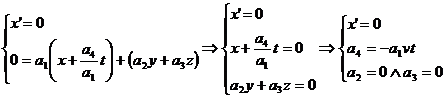 Il parallelismo si mantiene, oltre che per le rette, anche per i piani, in particolare xy e xz dovranno coincidere con x'y' e x'z', di conseguenza ancora una volta si ha che y=0 e z=0; y'=0 e z'=0:
