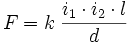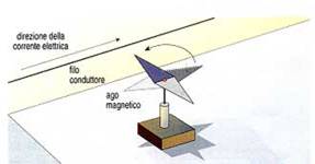 -Spetta tuttavia a André-Marie Ampère la formulazione in chiave matematica della forza esercitata da un campo magnetico sulla corrente elettrica, tramite l'attenta osservazione di un esperimento, detto esperimento di Ampère: tra due fili di lunghezza l e distanza d, percorsi rispettivamente da una corrente di intensità i1 e i2, si esercita una forza pari a: