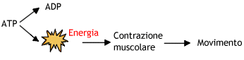 L'unico combustibile che il muscolo può utilizzare per contrarsi è l'ATP o acido adenosintrifosfatico. L'ATP è composto da una proteina (adenosina) e da tre radicali fosforici ad alta energia. Per fornire energia necessaria alla contrazione muscolare, l'ATP si scinde in ADP o acido adenosindifosfatico ed un radicale fosforico (P).