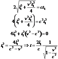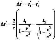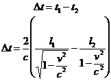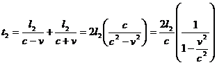 In quanto la luce, la cui velocità è supposta c nell'Etere, ha una velocità c + v nel verso della corrente e c - v nel verso contrario secondo la legge galileiana di addizione delle velocità. Il tempo impiegato, invece, a compiere la distanza l1 andata e ritorno sarà in generale diverso in quanto il mentre il raggio si avvicina allo specchio questo si muove: