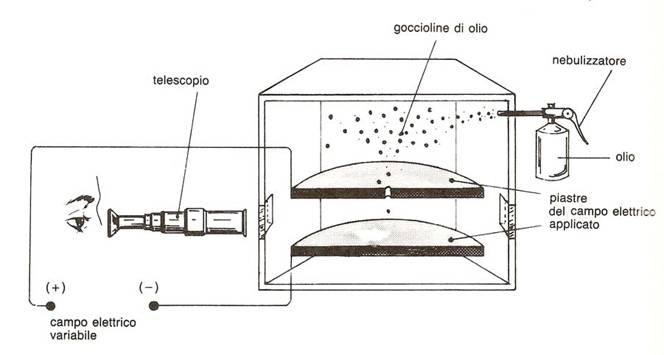 goccia, che aumenta la sua carica catturando altri elettroni. Millikan osserva