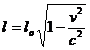 A questo punto se indichiamo con lo la lunghezza a riposo di un corpo in quiete rispetto all'Etere, la sua lunghezza l in moto sarà: