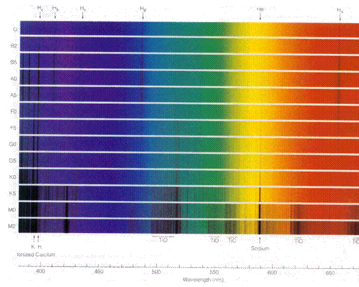 spettro dei vari tipi di stelle
