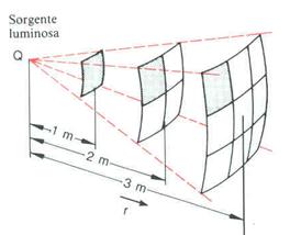 direzioni e quindi se la distanza dalla sorgente è doppia, l'estensione coperta