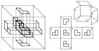 Si pensi di collocare nello spazio l'oggetto da rappresentare entro un cubo fig.1a: proiettando l'oggetto stesso sulle sei facce interne del cubo e aprendo quest'ultimo, sviluppando su un unico piano, ottenendo l'insieme di sei viste fig.1b: