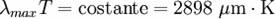 Legge di spostamento Wien: fra la temperatura T di emissione di un corpo nero e la lunghezza d'onda λmax in corrispondenza della quale esso emette la massima densità di energia, sussiste la relazione: