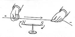 Questo poi, porterà Öersted alla formulazione della legge fondamentale dell'elettromagnetismo: l'effetto magnetico della corrente elettrica ha un movimento circolare attorno a questa, e si dispone secondo le linee di campo. La situazione di partenza è quella di un corpo esteso rigido in equilibrio: la somma di tutti i momenti agenti sull'ago deve necessariamente essere uguale a 0.