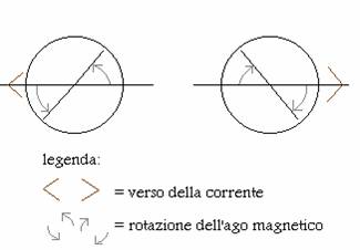Accendendo l'interruttore si genera un passaggio di corrente all'interno del conduttore e ciò comporta come effetto macroscopico la rotazione dell'ago magnetico in senso orario o antiorario (a seconda che microscopicamente la corrente si muova in un verso o nell'altro. vedi immagini seguenti).